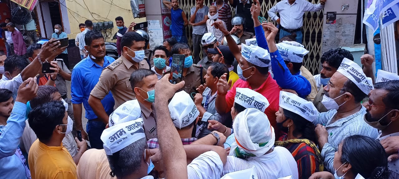 हरिद्वार: आम आदमी पार्टी ने रविवार को बीजेपी के कार्यकर्ताओं द्वारा आप पार्टी की प्रदेश उपाध्यक्ष महिला मोर्चा,हेमा भंडारी के साथ अभद्रता और गाली गलौच करने एवम कैनोपी फाड़ने के विरोध में आज आप कार्यकर्ताओं ने विरोध प्रदर्शन किया । आप कार्यकर्ता सुबह चन्द्राचार्य चौक पर एकत्रित हुए और फिर वहां से उन्होंने नारेबाजी करते हुए आरोपियों के खिलाफ जल्द गिरफ्तारी की मांग की गई । इस दौरान पुलिस की आप कार्यकताओं से तीखी नोक झोंक भी हुई पुलिस द्वारा आप कार्यकर्ताओ पर पुलिस बल का प्रयोग भी किया गया। इस दौरान आप उपाध्यक्ष ओपी मिश्रा ने कहा कि बीजेपी के प्रदेश अध्यक्ष के इशारों पर बीजेपी के कार्यकर्ता आप कार्यकर्ताओ के साथ अभद्रता और गाली गलौच कर कर रहे है । लोकतंत्र में सबको अपनी बात कहने का अधिकार है परंतु बीजेपी के नेता अपनी जमीन खिसकती देख कर तानाशाही पर उतर आए है । इनके पास 18 साल का देने को हिसाब नही है । अपनी हार को देखते हुए बीजेपी अब उन्माद फैलाकर धर्मनगरी की आवो हवा में जहर घोलने का काम कर रही है ।