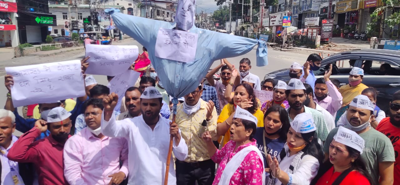 देहरादून: उत्तराखंड मुक्त विश्वविद्यालय में हुई अवैध नियुक्तियां और बीजेपी ,आरएसएस समेत मुक्त विश्वविद्यायल के कुलपति के चहेतों को सरकारी नौकरी देने के विरोध में आज आम आदमी पार्टी ने प्रदेश की सभी 70 विधानसभाओं में प्रदर्शन करते हुए उच्च शिक्षा मंत्री धन सिंह रावत का पुतला फूंका और कुलपति को बर्खास्त करने समेत उच्च शिक्षा मंत्री, धन सिंह रावत का इस्तीफा मांगा । राजधानी देहरादून में भी हर विधानसभा में आप कार्यकर्ताओं ने उच्च शिक्षा मंत्री के खिलाफ जोरदार प्रदर्शन करते हुए उनका पुतला दहन किया। रायपुर,राजपुर,सहसपुर,डोईवाला समेत धर्मपुर विधानसभा में आप कार्यकर्ताओं ने जोरदार प्रदर्शन किया । आप प्रदेश उपाध्यक्ष विशाल चौधरी ने उच्च शिक्षा मंत्री पर आरोप लगाते हुए कहा कि उच्च शिक्षा मंत्री धन सिंह रावत ने अपने पद का दुरुपयोग करते हुए उत्तराखंड मुक्त विश्वविद्यालय में अपने चहेतों के साथ साथ आरएसएस ,पूर्व मुख्यमंत्री रमेश पोखरियाल निशंक और वहां के कुलपति के करीबियों को अवैध रुप से नियुक्त करवाया।