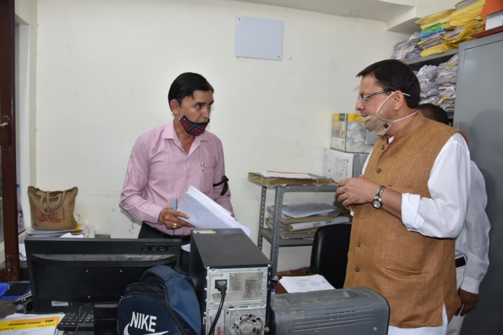 देहरादून: मुख्यमंत्री पुष्कर सिंह धामी ने आज मंगलवार को देहरादून नगर निगम का औचक निरीक्षण किया। सीएम को अचानक कार्यालय में देख अधिकारियों और कर्मचारियों में हड़कंप मच गया। इस दौरान सीएम ने सभी कक्षाों में जाकर कर्मचारियों से काम-काज के बारे में जानकारी ली। वहीं, काम के लिए नगर निगम आए लोगों से बातचीत कर निगम की व्यवस्थाओं के बारे में भी पूछा।