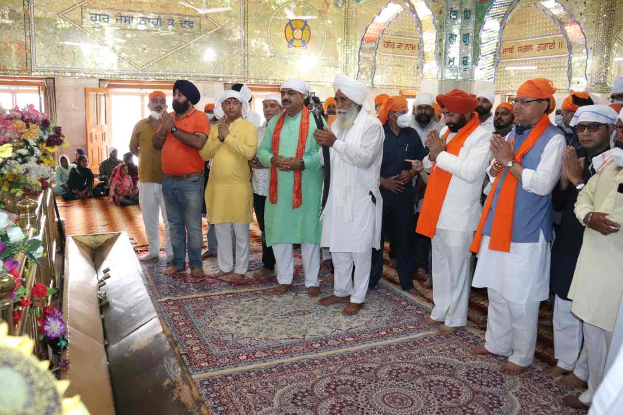 रूद्रपुर: प्रदेश के राज्यपाल गुरमीत सिंह एवं प्रदेश के मुख्यमंत्री पुष्कर सिंह धामी ने एक दिवसीय कार्यक्रम के दौरान गुरूद्वारा नानकमत्ता साहिब में पहुचकर मत्था टेक कर प्रदेश की खुशहाली के लिए अरदास की इसके उपरान्त उन्होने गुरूद्वारा परिसर में झाड़ू लगाई तदोपरान्त लंगर में बैठकर प्रसाद ग्रहण किया।