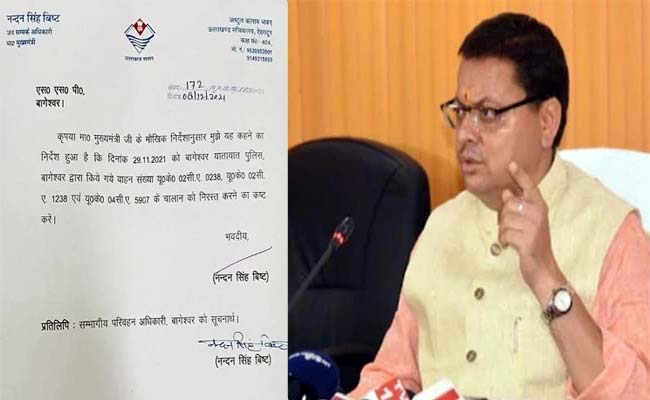 दरसल पिछले 2-3 दिनों से सोशल मीडिया पर एक पत्र वायरल हो रहा है। वायरल पत्र के अनुसार मुख्यमंत्री पुष्कर सिंह धामी के पीआरओ नंदन सिंह बिष्ट ने बागेश्वर के एसएसपी को पत्र लिखकर ट्रैफिक पुलिस द्वारा हाल ही में किये गए तीन वाहनों के चालान को निरस्त करने को कहा गया है।