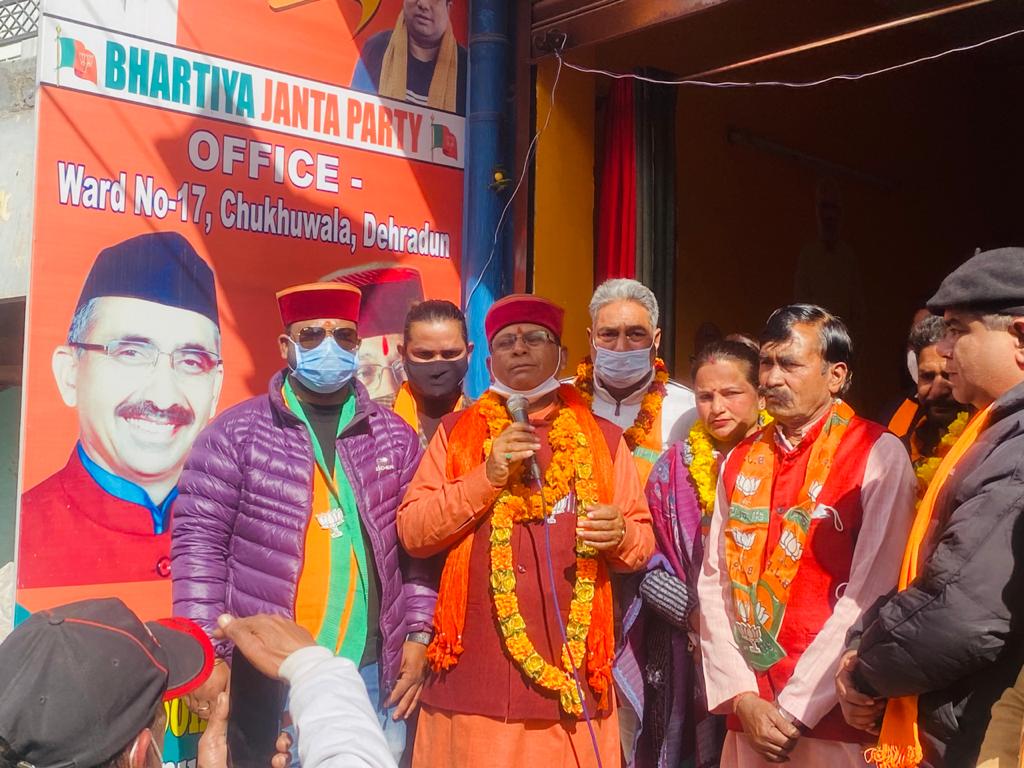 देहरादून: वार्ड नं 17 चुक्खुवाला मे भाजपा नेता सुनील सोनकर के कार्यालय पर भाजपा 20 राजपुर विधानसभा के बीजेपी प्रत्याशी खजानदास के समर्थन में क्षेत्र के लगभग 200 लोगों ने मानव श्रृंखला बनाकर एक साथ कर्तव ध्वनि से उनको अपना अमूल्य मत एंव समर्थन देकर भारी मतों से विजयी बनाने का संकल्प लेते हुए खजानदास जी विजयी हों के नारे लगाते हुए उनका स्वागत अभिनन्दन किया गया। खजानदास जी ने अपने समर्थकों को संबोधित करते हुए, पूर्ण विश्वास दिलाया की मैं अपने सभी समर्थकों सेवा हेतु सदैव तत्पर रहूंगा।