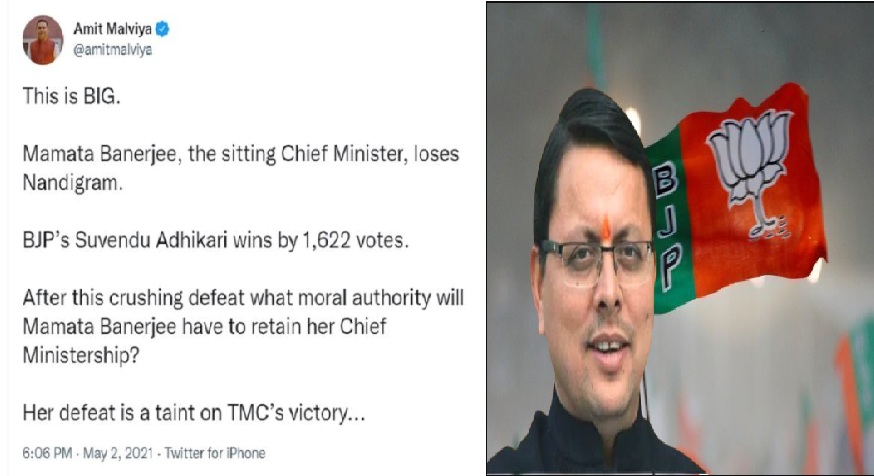 मालवीय ने ममता की हार को टीएमसी की जीत पर धब्बा भी बताया था. अमित मालवीय ने तब ये नहीं सोचा होगा कि कुछ ऐसा ही एक साल बाद ही उनकी पार्टी के साथ भी होगा. उत्तराखंड में बीजेपी को पूर्ण बहुमत मिल गया लेकिन पार्टी के मुख्यमंत्री पद के चेहरे पुष्कर सिंह धामी अपनी ही सीट पर मात खा गए. बावजूद इसके धामी राज्य के अगले सीएम बन रहे हैं.