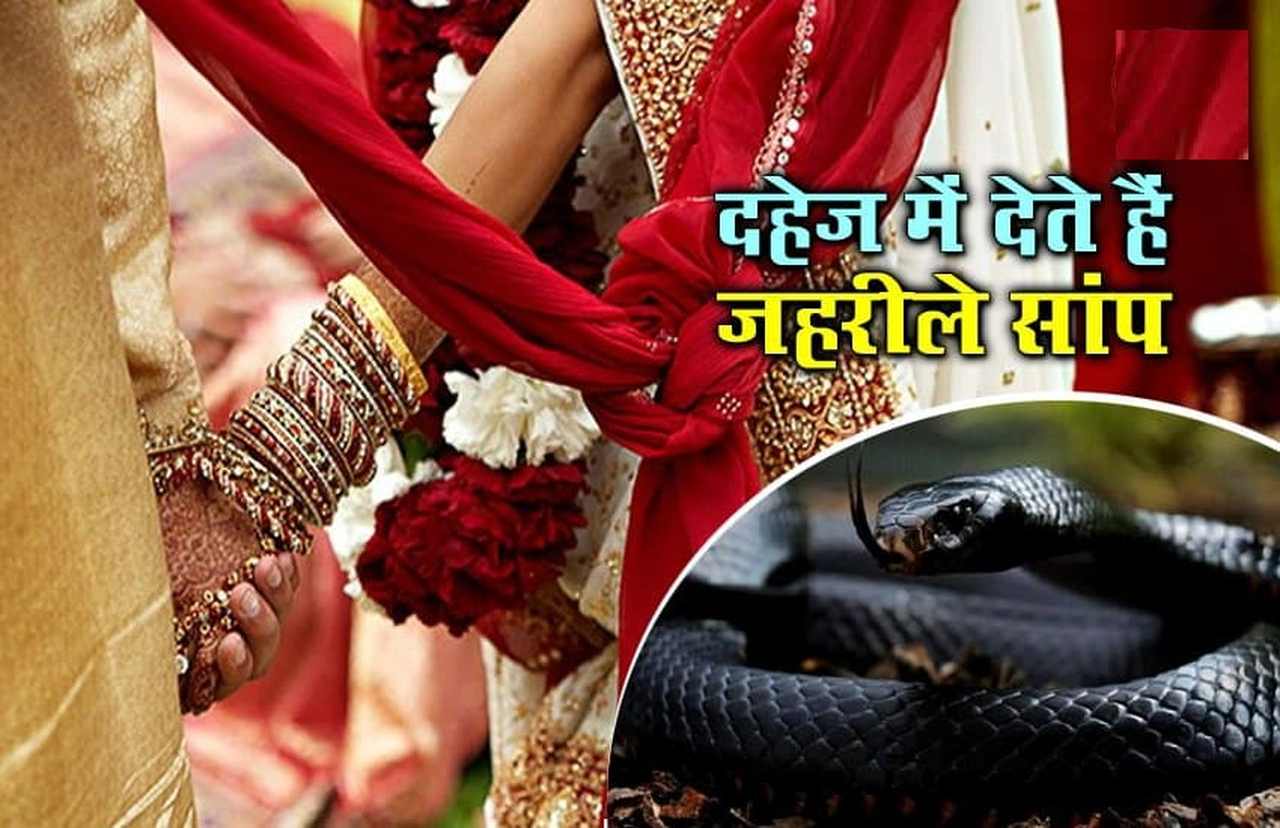 न्यूज़ डेस्क: भारत में बेटी की शादी होने पर उसे व उसके ससुरालवालों को घर का फर्नीचर, कार, कपड़े, गहने आदि चीजें उपहार के तौर पर दी जाती है। ताकि नए घर में लड़की को किसी चीज की कमी न हो। मगर क्या आपने कभी सुना है दहेज में दामाद को सांप देना? हां यह बात सच है भारत देश में एक ऐसी जगह है जहां पर शादी होने पर बेटी व दामाद को उपहार के तौर पर सांप दिए जाते हैं। तो चलिए जानते हैं इस हैरान कर देने वाली बात के बारे में विस्तार से…
