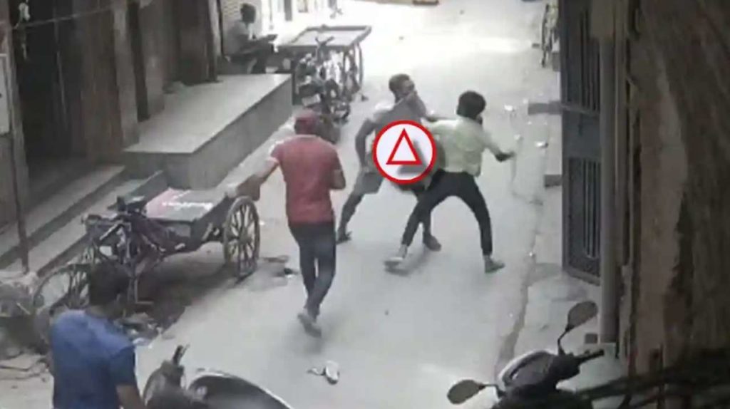 नई दिल्ली: दिल्ली में उधार के पैसे के लेनदेन के चलते दो बदमाश आपस में भिड़ गए। एक ने दूसरे पर ब्लेड और ईटों से हमला किया गया। दोनों के बीच जमकर मारपीट भी हुई, जिसका वीडियो सामने आया है। मामला दिल्ली के आदर्श नगर इलाके का है। यहां पर लगे एक सीसीटीवी वीडियो में देखा जा सकता है कि रोड पर एक युवक आ रहा होता है और दूसरा युवक उसके साथ मारपीट करने लगता है। इस दौरान तीसरा युवक भी पहले वाले व्यक्ति से मारपीट में शामिल हो जाता है। उसकी जमकर पिटाई की जाती है।