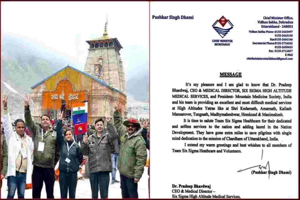 गौरतलब है कि केदारनाथ कपाट खुलने से पहले मुख्यमंत्री ने अपने आवास से सिक्स सिग्मा हेल्थकेयर टीम के साथ केदार मेडिकल का शुभारंभ किया था और सभी मेडिकल व पैरामेडिकल स्टाफ को मोटिवेट करते हुए केदारनाथ धाम भेजा. सिक्स सिग्मा टीम द्वारा केदारनाथ धाम में बेस्ट मेडिकल सर्विस उपलब्ध करवाई जा रही है. इस बार रिकॉर्ड तोड़ यात्री केदारनाथ आ रहे हैं और मेडिकल टीम भी अनेक चुनौतीपूर्ण माहौल में काम करना पड़ रहा है. एक-एक डॉक्टर लगभग 300 मरीजों की मेडिकल केयर कर रहा है. लेकिन सिक्स सिग्मा की टीम बर्फीली वादियों में विषम परिस्थितियों में भी अपने कर्तव्य पर अडिग है.