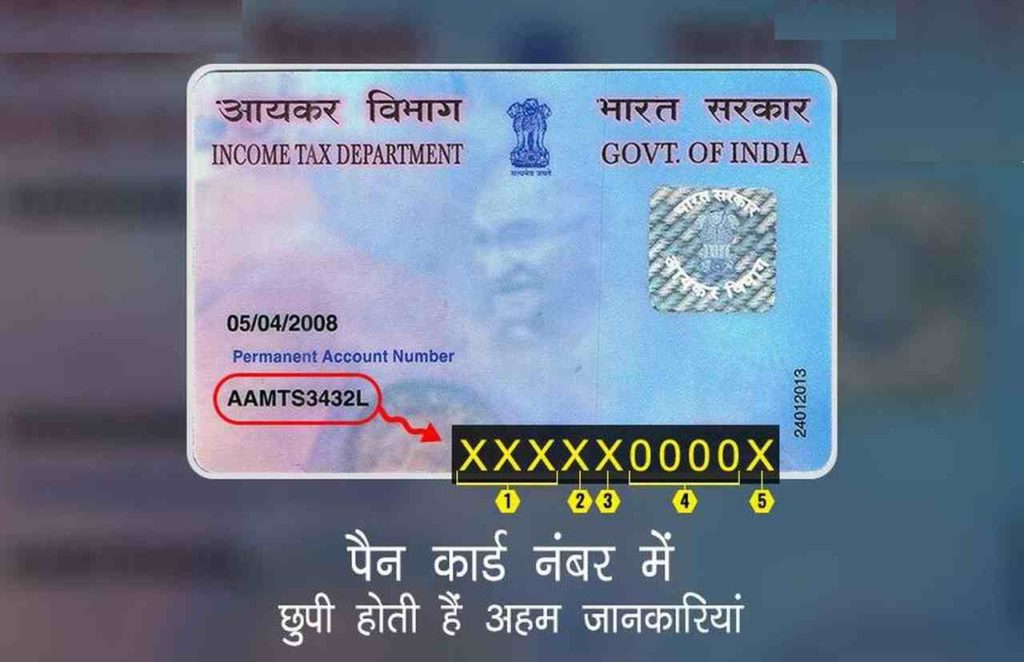 पैन आयकर विभाग द्वारा जारी किया गया दस अंकों का अद्वितीय अल्फ़ान्यूमेरिक नंबर है। यह लैमिनेटेड प्लास्टिक कार्ड के रूप में जारी किया जाता है। इसके पहले पांच नंबरों में से फर्स्ट तीन नंबर अल्फाबेटिक सीरीज जैसे- AAA to ZZZ में होते हैं, जिसे आयकर विभाग की ओर से तय किया जाता है। वहीं पैन का चौथा नंबर पैन धारक की स्टेटस के बारे में जानकारी देता है और यह बताता है कि पैन कार्ड किसके लिए है।
