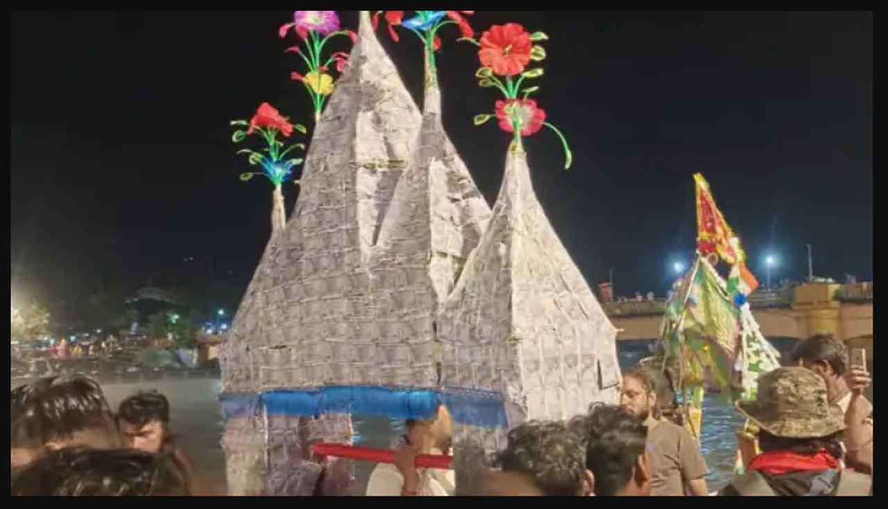 हरिद्वार : सावन महीना शुरू होते ही दिल्ली, उत्तर प्रदेश सहित कई राज्यों से शिव भक्त कांवड़ लेकर उत्तराखंड आ रहे हैं। हरिद्वार में गंगा नदी से जल भरकर कांवड़िए वापस जा रहे हैं। हरिद्वार में कांवड़ यात्रा के दौरान एक से बढ़कर एक कांवड़ देखने को मिल रही है। सोमवार रात हरकी पैड़ी पर दिल्ली से आए युवा कांवड़ियों ने कांवड़ को सवा लाख रुपये के नोटों से सजाया। नोट लगे कांवड़ को देखने के लिए लोगों का हुजूम लगा रहा है। सवा लाख रुपये के नोटों से सजी कांवड़ को जिसने भी देखा उसने उसके साथ सेल्फी ली या फिर वीडियो बनाकर सोशल मीडिया पर वायरल की।