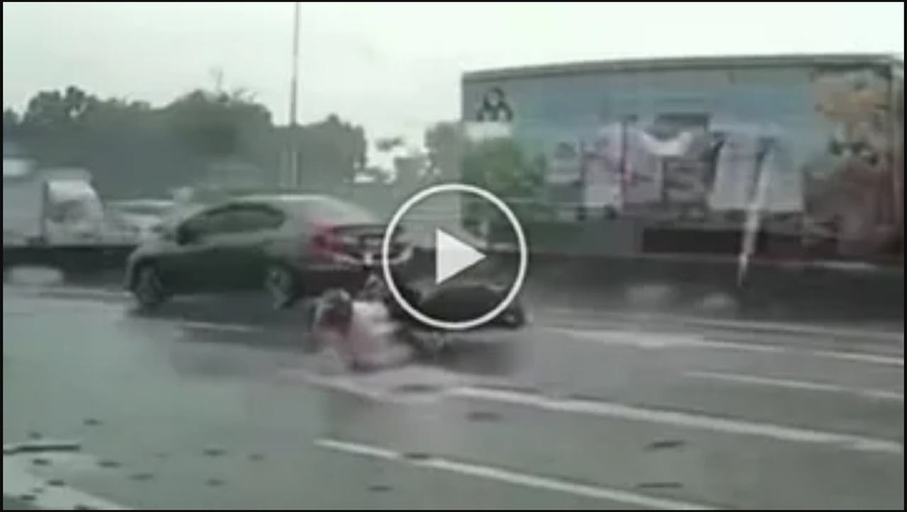 बारिश के मौसम में सड़क पर हमेशा सतर्क होकर वाहन चलाना चाहिए. क्योंकि इन दिनों सड़कें गीली होती हैं, ऐसे में तेज रफ्तार वाहनों के पहियों का फिसलना आम बात है. अब जरा वायरल हो रहे इस वीडियो को ही देख लीजिए. बारिश के दौरान एक बाइक सवार युवक हाईवे से कहीं जा रहा होता है कि तभी पहिया फिसलने से वह असंतुलित होकर गिर जाता है. आप देख सकते हैं कि हाईवे पर गाड़ियां कितनी तेज रफ्तार में चल रही होती हैं. इसी दौरान एक ट्रक वहां से गुजरता है. गनीमत रही कि युवक फौरन बाइक छोड़कर वहां से निकल लेता हैं. लेकिन वह ट्रक के पहिये के नीचे आने से बाल बराबर बचता है.