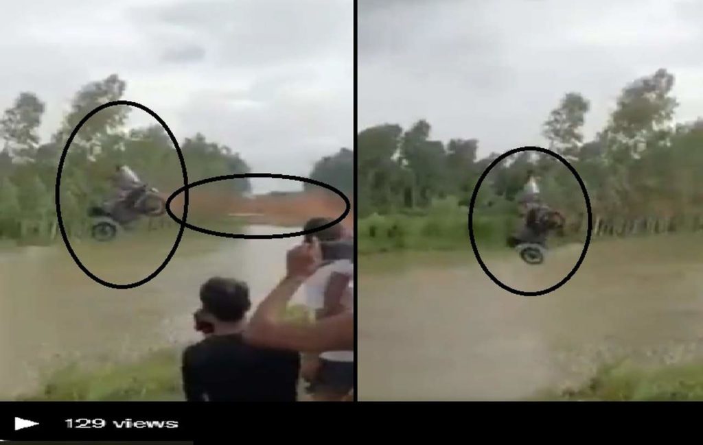 वीडियो में देखा जा सकता है कि गांव के बाहर नदी के पास कुछ युवक खड़े हुए हैं. इसी बीच एक तेज रफ्तार बाइक सवार युवक स्टंट करते हुए खुद को आग लगाता है और तेज रफ्तार में बाइक सहित तालाब में उछलते हुए स्टंटबाजी करता है. तालाब के आस पास कई तैराक युवक भी कूदकर स्टंटबाजी कर रहे हैं. अपनी जान जोखिम में डालने के साथ-साथ जो नदी में नहा रहे हैं उनकी भी जान के साथ खिलवाड़ किया जा रहा है. फिलहाल वीडियो वायरल होने के बाद पुलिस जांच पड़ताल कर रही है मीडिया टीम एक्टिव कर दी गई है. हसनगंज क्षेत्राधिकारी राजकुमार शुक्ला ने बताया कि स्टंट का वीडियो वायरल हुआ है स्टंट करने वाले युवक की तलाश की जा रही है.
