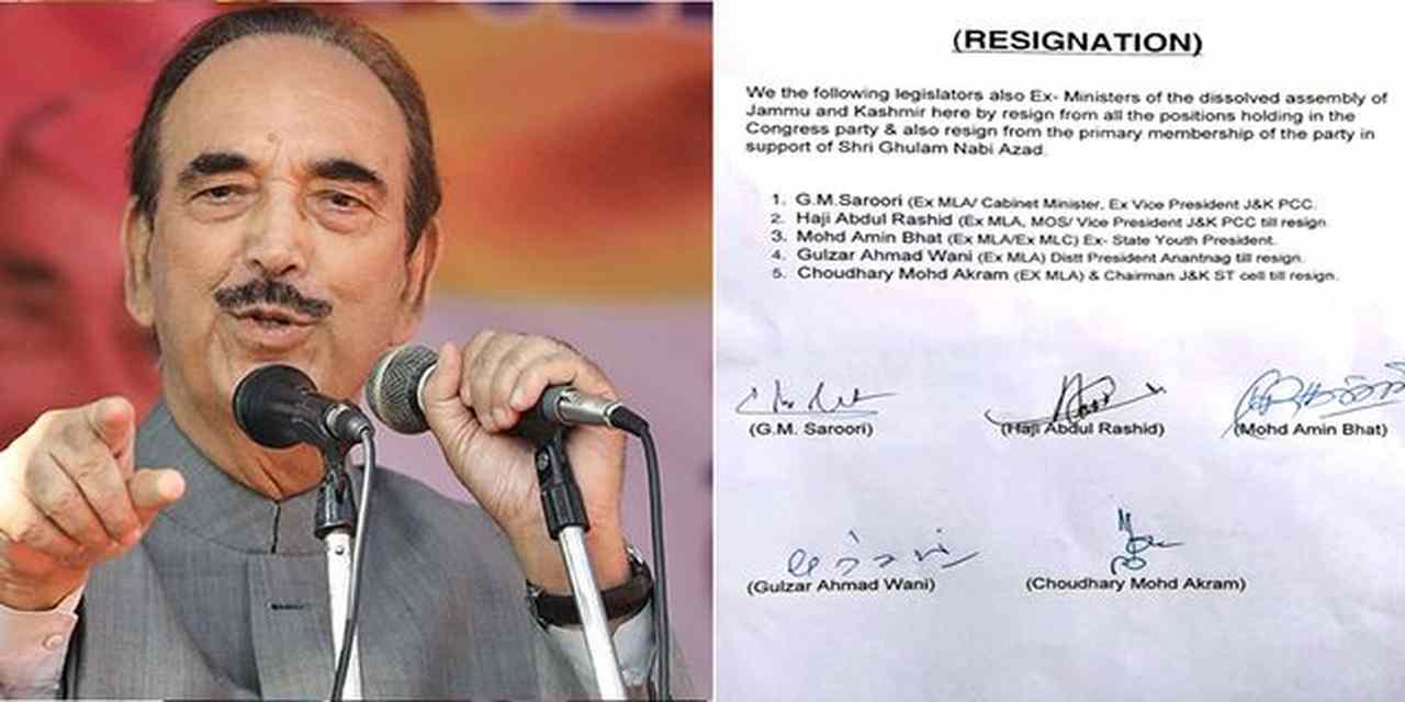 जम्मू-कश्मीर में कांग्रेस को लगातार झटके मिल रहे हैं. उनके समर्थन में कांग्रेस के 5 पूर्व विधायकों ने पार्टी छोड़ने का ऐलान किया है. इनमें से कुछ पिछली सरकार में मंत्री भी रहे थे. शुक्रवार कांग्रेस विधायक जी. एम. सरूरी, हाजी अब्दुल राशिद, मोहम्मद अमीन भट, गुलजार अहमद वानी और चौधरी मोहम्मद अकरम ने गुलाम नबी आजाद के समर्थन में कांग्रेस की प्राथमिक सदस्यता से इस्तीफा दिया. ये सभी 2014 यानी अंतिम विधानसभा चुनाव में कांग्रेस के टिकट पर चुनाव जीत कर विधायक बने थे. जम्मू-कश्मीर के पीसीसी अध्यक्ष जी. एम. सरूरी ने कहा कि गुलाम नबी आजाद साहब ने जो फैसला लिया है और उनके समर्थन में हम 5 विधायकों ने इस्तीफा दिया है.