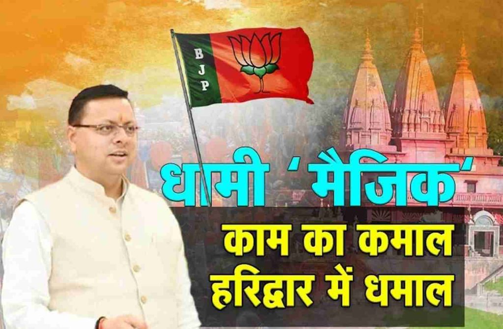 देहरादून: धाकड़ धामी के काम ने एक बार फिर साबित कर दिया है की उत्तराखंड मे काम बोलता है और उत्तराखंड की जनता काम देखकर धामी के नाम पर वोट देती है जैसा बीते विधानसभाचुनाव मे दिखा और उपचुनाव मे नज़र आया और एक बार फिर हरिद्वार के त्रिस्तरीय चुनाव मे जनता ने काम देखकर धामी के नाम पर मुहर लगा दी उयर हरिद्वार त्रिस्तरीय पंचायत चुनाव मे पार्टी को काफी अच्छी जीत मिली है। सीएम धामी के नेतृत्व में भाजपा का प्रदर्शन दमदार रहा है। अब तक इतिहास में भाजपा हरिद्वार जिला पंचायत चुनावों में 4 से ज्यादा सीटों पर कभी जीत नहीं पाई है इस बार 14 सीटों पर भाजपा जीत दर्ज करने में कामयाब हुई है। मौजूदा स्थिति को देखते हुए भाजपा कई और सीटों पर भी जीत सकती है।