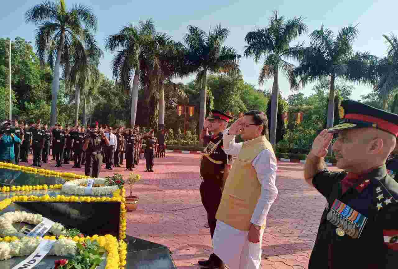 मुख्यमंत्री धामी ने सागर महार रेजिमेंट में शहीद स्मारक पर जाकर शहीद हुए सैनिकों को पुष्पचक्र अर्पित कर श्रद्धांजलि दी. धामी ने शहीद स्मारक के समीप ही महोगनी का पौधा लगाकर पौधरोपण किया. पूर्व सैनिकों से चर्चा की एवं उनके अनुभव की जानकारी प्राप्त की.मुख्यमंत्री पुष्कर सिंह धामी ने म्यूजियम पहुंचकर महार रेजीमेंट एवं सेना के संबंध में बनाई गई लघु फिल्म के बारे में कर्नल अविनाश आचार्य से विस्तार से जानकारी प्राप्त की. उन्होंने म्यूजियम में लगाई गई स्मृतियों को भी देखा. इस अवसर पर लेफ्टिनेंट जनरल सी वंशी पुन्नपा, ब्रिगेडियर नवनीत जरियाल ,डिप्टी कमांडेंट उमंग कुमार चौधरी, कर्नल अविनाश आचार्य, मेजर नवतेज सिंह, सहित अन्य सैन्य अधिकारी मौजूद थे.