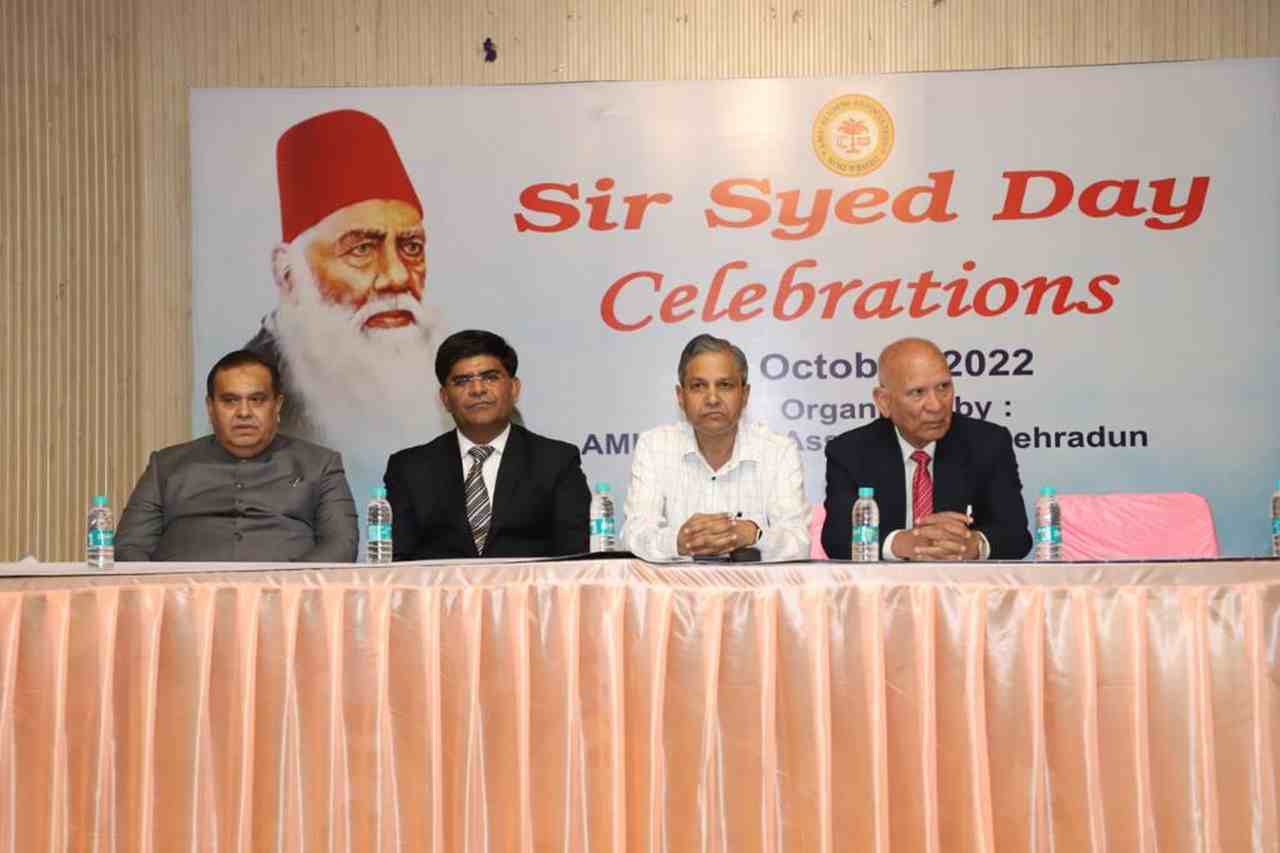देहरादून: एएमयू एलुमनी एसोसिएशन, देहरादून द्वारा विश्व विख्यात अलीगढ़ मुस्लिम यूनिवर्सिटी के संस्थापक सर सैयद अहमद खान साहब के जन्मदिवस को “सर सैयद डे” के रूप में बड़ी धूमधाम से ओएनजीसी ऑफीसर्स क्लब में मनाया गया। कार्यक्रम का शुभारंभ मुख्य अतिथि उत्तराखंड लोक निर्माण विभाग के प्रमुख अभियंता अयाज अहमद साहब द्वारा दीप प्रज्वलन कर किया गया। कार्यक्रम के विशिष्ट अतिथि डॉ अब्दुल कय्यूम साहब, पुलिस सेवा प्राधिकरण के सदस्य न्याय रहे। इस अवसर पर डॉक्टर इरशाद अहमद साहब ने संस्था के कार्यकलापों पर प्रकाश डालते हुए संस्था के सचिव डॉ साजिद जमाल के माध्यम से मुख्य अतिथि का स्वागत कराया गया।