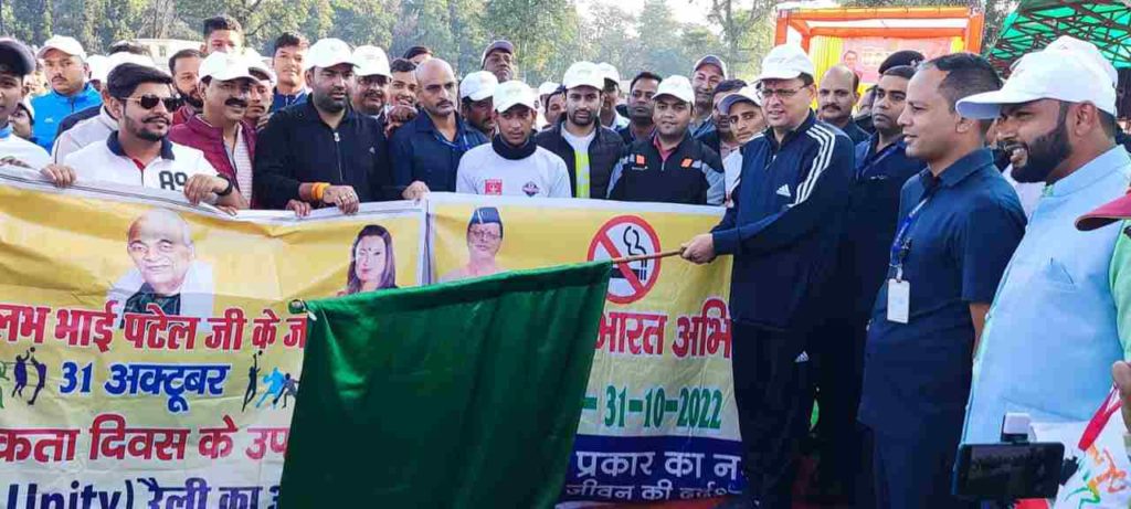 चंपावत: सरदार बल्लभ भाई पटेल जी के जन्म दिवस 31 अक्टूबर राष्ट्रीय एकता दिवस के उपलक्ष्य में चंपावत जिले के मिनी स्टेडियम बनबसा से एनएचपीसी गेस्ट हाउस बनबसा तक आयोजित Run For Unity (रैली) में बतौर मुख्य अतिथि मुख्यमंत्री पुष्कर सिंह धामी द्वारा प्रतिभाग कर एकता दौड़ को हरी झंडी दिखाकर रवाना किया। मुख्यमंत्री द्वारा सभी प्रतिभागियों को राष्ट्रीय एकता की शपथ भी दिलाई गई। एकता दौड़ में शामिल होकर एनएचपीसी गेस्ट हाउस पहुंच कर मुख्यमंत्री ने सरदार बल्लभ भाई पटेल के चित्र पर पुष्प अर्पित किए। मुख्यमंत्री ने कहा की सरदार बल्लभ भाई पटेल जी ने एकीकरण में महत्वपूर्ण योगदान दिया । देश में 562 से भी ज्यादा रियासतों को एक सूत्र में पिरोने का काम सरदार बल्लभ भाई पटेल ने ही किया था। इसलिए उन्हें आजाद भारत के इतिहास में लौह पुरुष की संज्ञा दी गई । उन्होंने कहा कि हमारे देश के अंदर सरदार बल्लभ भाई पटेल जैसे जांबाज लौह पुरुष पैदा हुए, वहीं देश के अंदर शंकराचार्य जी ने पूरब से लेकर पश्चिम, उत्तर से लेकर दक्षिण तक एक सूत्र में पिरोने का कार्य किया। आज हमारे देश के अंदर प्रधानमंत्री नरेन्द्र मोदी जी के नेतृत्व में देश एक भारत श्रेष्ठ भारत के संकल्प के साथ आगे बढ़ रहा है। आज पूरी दुनिया में भारत का मान सम्मान एवं स्वाभिमान बढ़ रहा है। आज भारत प्रधानमंत्री नरेन्द्र मोदी के नेतृत्व में हर क्षेत्र में तेजी से प्रगति कर रहा है। जिस समय पूरा विश्व कोरोना महामारी से जूझ रहा था उस समय मोदी जी के मार्गदर्शन में देश में वैश्विक महामारी कोरोना लड़ने के लिए दो-दो स्वदेशी वैक्सीन बनाई गई। देश में गरीबों के घर का चूल्हा जलते रहे, कोई भी भूखा न रहे इसके लिए गरीब कल्याण अन्न योजना चलाई और जिससे हर किसी को इस योजना का लाभ मिल रहा है।