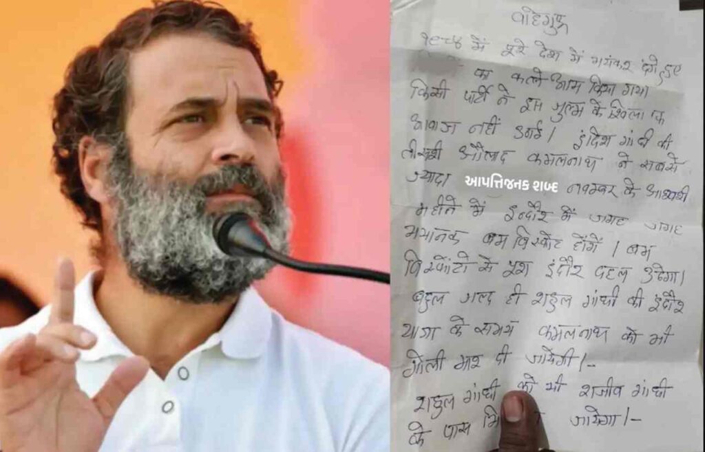 नई दिल्ली : कांग्रेस (Congress) की भारत जोड़ो यात्रा (Bharat Jodo Yatra) जारी है. इस बीच, कांग्रेस सांसद राहुल गांधी (Rahul Gandhi) के मध्य प्रदेश के इंदौर (Indore) पहुंचने से पहले उनको धमकी दी गई है. धमकी वाले लेटर में राहुल गांधी और कमलनाथ (Kamal Nath) को मारने की धमकी दी गई है. धमकी वाले पत्र में सिख दंगों का जिक्र है. इसके अलावा इंदौर को बम धमाकों से दहलाने की चेतावनी भी दी गई है. राहुल गांधी की भारत जोड़ो यात्रा के इंदौर पहुंचने से पहले वहां के व्यापारी को धमकी भरा पत्र मिला है. धमकी वाला पत्र मिलने से हड़कंप मच गया है.