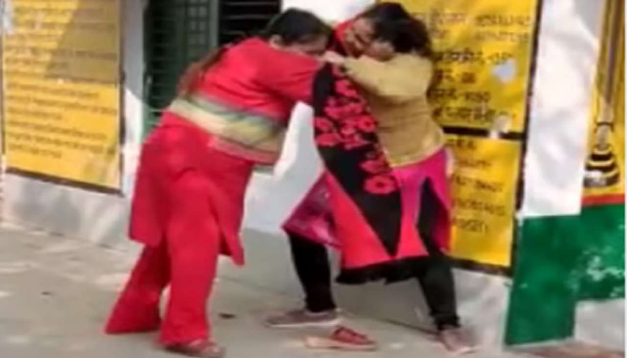 कासगंज: कासगंज के सहावर विकासखंड के बढ़ारीकलां के प्राथमिक विद्यालय में दोपहर के समय में आपसी कहासुनी के बाद विद्यालय की प्रधानाध्यापिका एवं शिक्षामित्र के बीच जमकर बाल पकड़कर मारपीट हुई। लात घूसे चले। एक दूसरे पर चप्पलें बरसाई गईं। अन्य शिक्षिकाओं ने बचाव किया। बमुश्किल दोनों अलग-अलग हुए। इस घटना का सोशल मीडिया पर वीडियो वायरल हुआ है। शनिवार दोपहर के समय प्रधानाध्यापिका बीनेश कुमारी और शिक्षामित्र साधना के बीच आपस में कहासुनी हुई। कहासुनी इतनी बढ़ गई कि दोनों में जमकर मारपीट होने लगी। काफी देर तक बाल पकड़कर जमकर मारपीट हुई। दोनों एक दूसरे पर काफी आक्रामक होकर चिल्ला रहीं थीं। स्कूल के बच्चे भी सहम गए। आसपास के ग्रामीण भी मौके पर आ गए। दोनों को बमुश्किल एक दूसरे से अलग किया गया। दोनों ही मारपीट में घायल हो गईं।