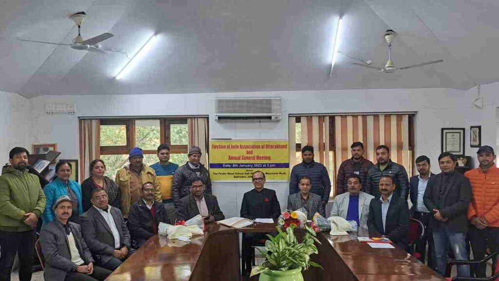 देहरादून: 2022-26 जूडो एसोसियेशन ऑफ उत्तराखण्ड का चुनाव पोस्टलवीड कालेज (मसूरी रोड देहरादून) के सभागार में कराया गया । चुनाव को सुचारु रूप से सम्पन्न कराने के लिए जूडो फेडरेशन ऑफ इण्डिया ने अपना आबजवर धनन्जय भोसले (पुणे महाराष्ट्र) से नियुक्त किया था और जूडो एसोसियेशन उत्तराखण्ड द्वारा चुनाव अधिकारी कमल विरमानी एडवोकेट को बनाया था । इनकी देख रेख मे चुनाव सुचारू रूप से सम्पन्न हुआ चुनावी प्रक्रिया में राज्य के विभिन्न जिलो की डिस्ट्रिक जुडो एसोसियेशन के सदस्य मौजूद रहे।
