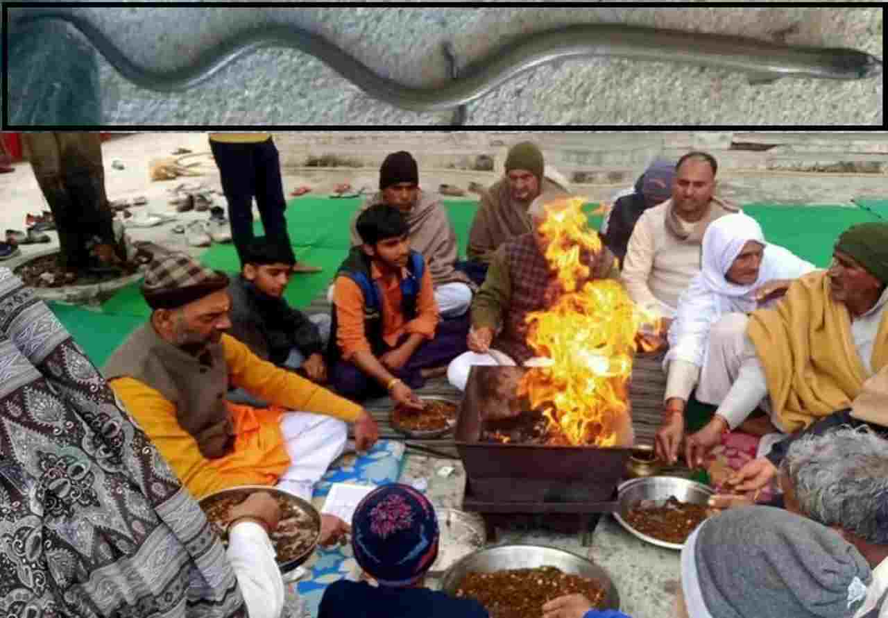 बागपत: छपरौली क्षेत्र के शबगा गांव में दूसरे समुदाय के एक युवक द्वारा भाले व डंडों से पीटकर सांप के मरने पर ग्रामीणों ने यज्ञ का आयोजन किया। साथ ही प्रसाद वितरण किया गया। इस आयोजन में हिंदू संगठन के कार्यकर्ताओं और सैकड़ों ग्रामीणों ने भाग लिया। थाना क्षेत्र के शबगा गांव में सात जनवरी को दूसरे समुदाय के एक युवक ने संजीव पुत्र महेंद्र के प्लाट में बैठे लगभग 12 फुट लंबे सांप को लाठी व भले से पीट-पीट कर मार डाला था। उसके बाद आरोपी युवक सांप को लाठी पर लटका कर ले जा रहा था। तभी किसी ने उसका मोबाइल से वीडियो बनाकर सोशल मीडिया पर वायरल कर दिया। आरोपी युवक ने सांप के शव को जमीन में दबा दिया। पुलिस ने वायरल वीडियो के आधार पर युवक की पहचान कर सांप को गड्ढे से निकलवाया और वन विभाग को सूचना दी।