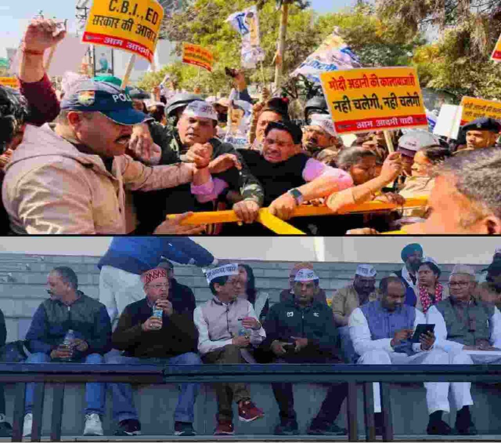 देहरादून: उद्योगपति गौतम अडानी प्रकरण में केंद्र सरकार पर मिलीभगत का आरोप लगाते हुए आम आदमी पार्टी ने प्रदर्शन किया। भाजपा मुख्यायल का घिराव करने जा रहे आप कार्यकर्ताओं को पुलिस ने रास्ते में रोक कर गिरफ्तार कर लिया। इस दौरान आप कार्यकर्ताओं की पुलिस के साथ तीखी नोकझोंक और धक्कामुक्की भी हुई। रविवार दोपहर धर्मपुर स्थित प्रदेश मुख्यालय से आप कार्यकर्ता जुलूस की शक्ल में नारेबाजी करते हुए भाजपा मुख्यालय की ओर रवाना हुए। नेहरू कालोनी में पुलिस ने फौव्वारा चौक के पास बेरिकेडिंग लगाकर रास्ता बंद किया हुआ था। पुलिस के जबरन रोकने पर आप कार्यकर्ता बेरेकेडिंग पर चढ़ने का प्रयास करने लगे।