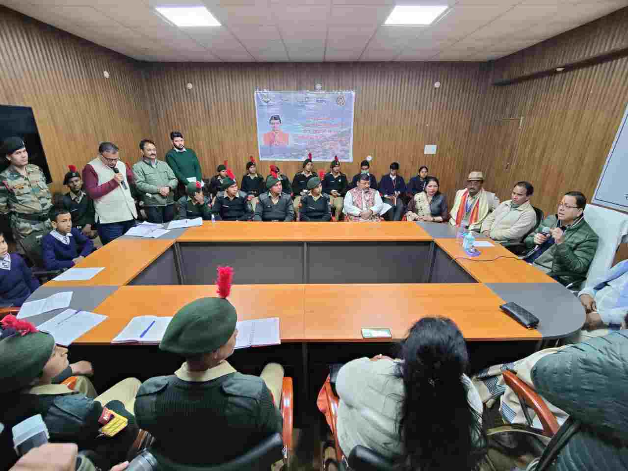 मुख्यमंत्री पुष्कर सिंह धामी ने कहा कि इस बार उत्तराखंड की झांकी “मानसखंड“ को गणतंत्र दिवस परेड में प्रथम स्थान प्राप्त हुआ है। उन्होंने कहा एन.सी.सी से हमें सेना के जैसा अनुशासन एवं साहस सीखने को मिलता है। एन.सी.सी जवान हर मोर्चे पर अपने तन मन के साथ खड़े रहते हैं। देश के अंदर आने वाले हर संकट में एनसीसी हमेशा आगे रहती है। उन्होंने कहा जीवन में शिक्षा प्राप्त करने का समय अमूल्य होता है। हमें अपने विद्यार्थी काल में पूरे मनोयोग से कार्य करना चाहिए। यदि संकल्प लेकर आगे बढ़ा जाए तो सपने जरूर साकार होते हैं।
