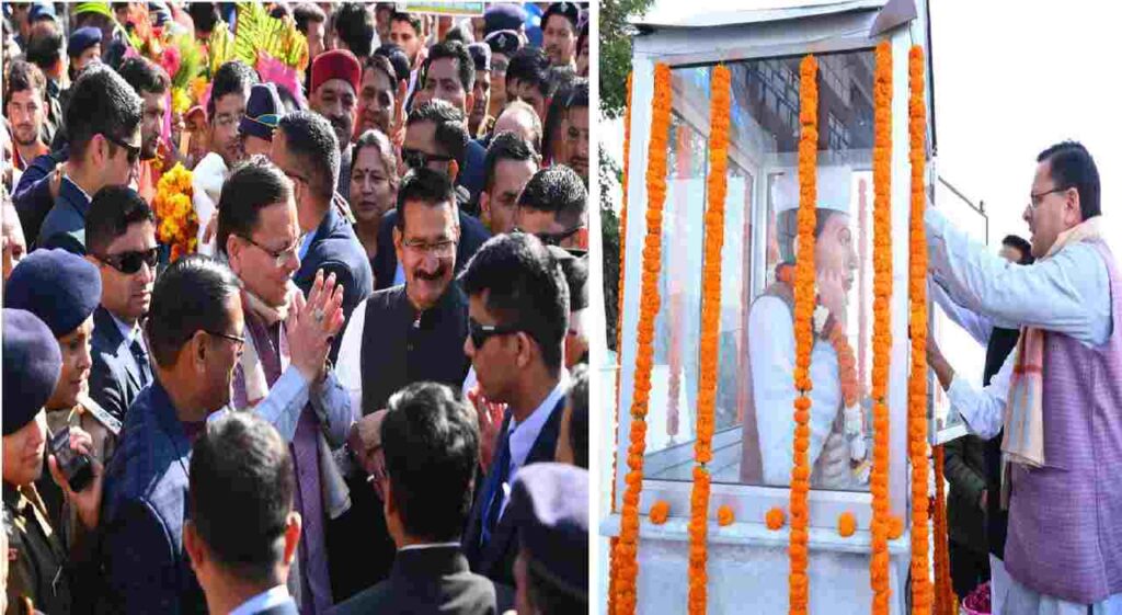 टिहरी: मुख्यमंत्री पुष्कर सिंह धामी ने रविवार को चंबा, टिहरी में आयोजित कार्यक्रम में प्रतिभाग करते हुए राइफल मैन बी०सी० गब्बर सिंह जी एवं अमर शहीद श्रीदेव सुमन जी के स्मारक पर पर माल्यार्पण कर उन्हें श्रद्धांजलि अर्पित की। इस अवसर पर मुख्यमंत्री धामी ने भारतीय जनता युवा मोर्चा एवं स्थानीय जनता द्वारा नकल विरोधी कानून पारित किए जाने के उपलक्ष पर आयोजित अभिनंदन / आभार रैली में भी प्रतिभाग किया।