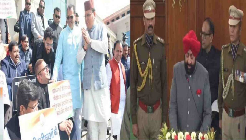 देहरादून: उत्तराखंड के राज्यपाल ले. ज. गुरमीत सिंह (सेनि.) के अभिभाषण के साथ ही आज सोमवार से विधानसभा के बजट सत्र का आगाज हुआ। राज्यपाल लेफ्टिनेंट जनरल गुरमीत सिंह को विधानसभा पहुंचने पर गार्ड ऑफ ऑनर दिया गया। वहीं दूसरी तरफ सदन के बाहर कांग्रेस ने धरना प्रदर्शन शुरू कर दिया है। परीक्षाओं में धांधली, महंगाई और अंकिता हत्याकांड को लेकर कांग्रेस के विधायक विधानसभा भवन के मुख्य गेट के सामने प्रदर्शन कर नारेबाजी कर रहे हैं। सत्र के लिए सत्ता और विपक्ष के कई विधायक भराड़ीसैंण विधानसभा भवन में पहुंच गए हैं।