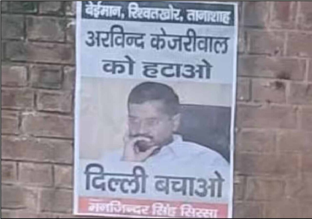 दिल्ली के कुछ इलाकों में प्रधानमंत्री नरेंद्र मोदी के खिलाफ लगे पोस्टर्स पर दिल्ली पुलिस की कार्रवाई ने अब आप और बीजेपी के बीच सियासी रंग ले लिया है. यही वजह है कि बुधवार को पीएम के खिलाफ पोस्टर सामने आने के बाद गुरुवार को सीएम अरविंद केजरीवाल के खिलाफ भी पोस्टर लगे मिले हैं. सीएम अरविंद केजरीवाल के खिलाफ लगे पोस्टर पर नीचे निवेदक में मजिंदर सिंह सिरसा नाम लिखा है. जबकि पीएम के खिलाफ लगे पोस्टर में न तो निवेदक का नाम था न ही प्रिंटर्स का.