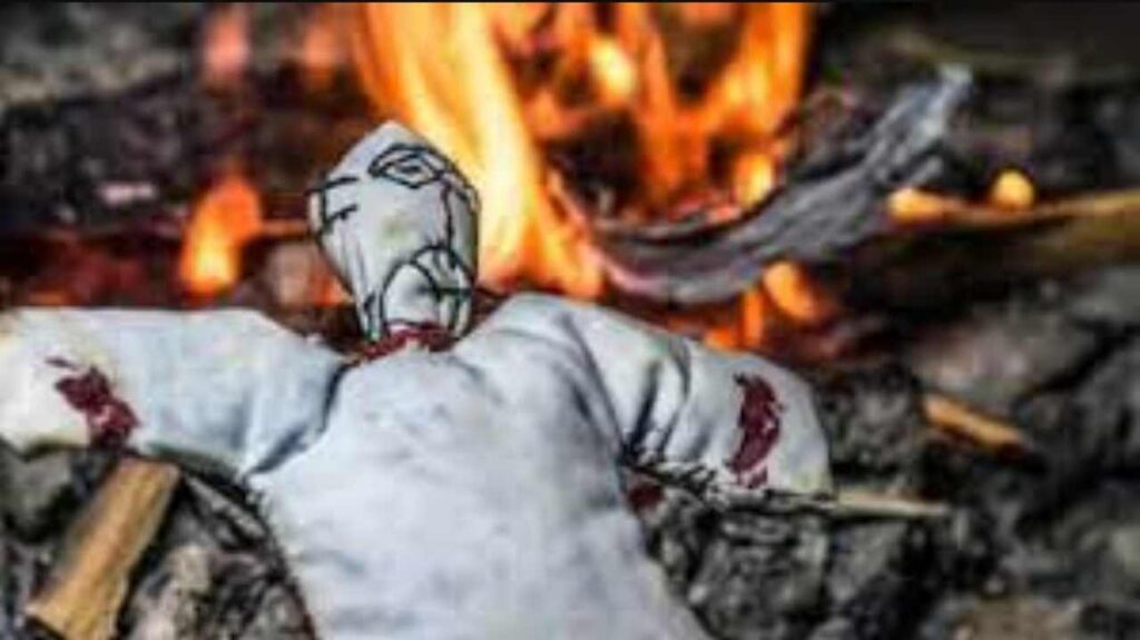 महिला को अंगार पर नंगे पैर चलवाया