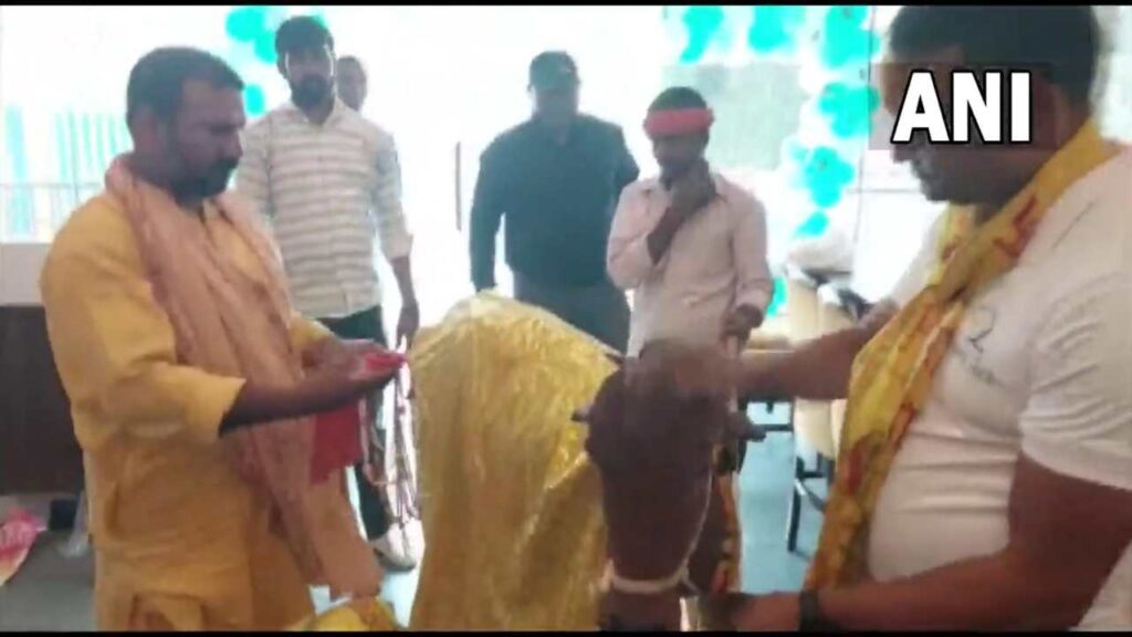 #WATCH | Uttar Pradesh: A restaurant in Lucknow, 'Organic Oasis' that offers food made out of organic farming produce, was inaugurated by a cow. pic.twitter.com/YWcfKqJQcX