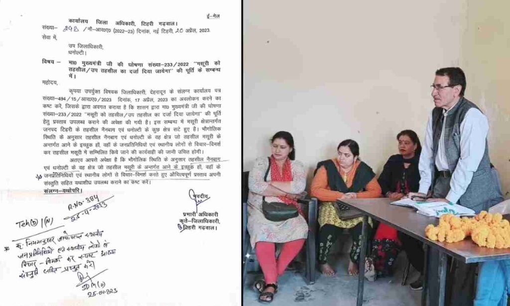 देहरादून: टिहरी जिला मुख्यालय से सैकड़ों किलोमीटर दूर धनौल्टी और नैनबाग तहसील को मसूरी तहसील में जोड़ने की कवायद तेज कर दी गई है. टिहरी जिला प्रशासन ने इसके लिए एक पत्र जारी किया है. जिसमें उप जिलाधिकारी धनौल्टी को इस संबंध में क्षेत्रवासियों की रायशुमारी के आदेश दिये गये हैं. टिहरी जिले का वह हिस्सा जो कि कभी अंग्रेजों के अधीन भी नहीं रहा और हमेशा देहरादून और टिहरी की सरहद पर मौजूद इस इलाके ने अपनी पौराणिक और सांस्कृतिक धरोहरों को समेट के रखा है. साथ ही यह वह हिस्सा है जो कि टिहरी राजशाही के जमाने से टिहरी से जुड़ा हुआ था लेकिन, आज क्षेत्रवासियों की समस्या को देखते हुए इसे देहरादून जिले के साथ जोड़ने की कवायद तेज कर दी गई है.