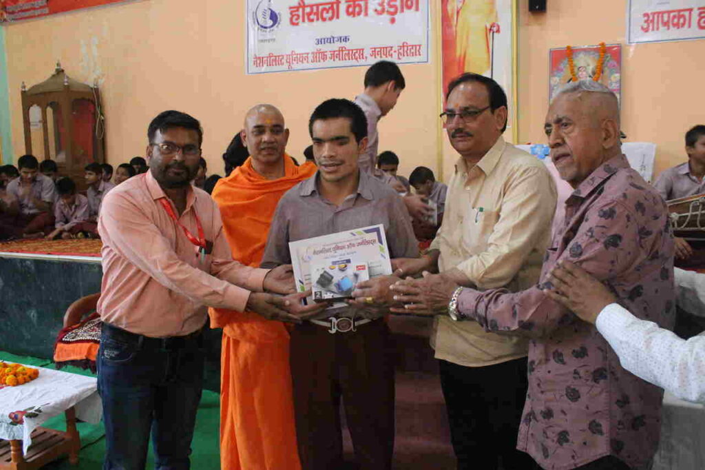 हरिद्वार: नेशनलिस्ट यूनियन ऑफ जर्नलिस्ट्स द्वारा दिव्यांग प्रतिभाओं को समर्पित वर्ष 2023 के ‘हौसलों की उड़ान’ कार्यक्रम में अनेक दृष्टिहीन और दृष्टिबाधित विद्यार्थियों और अध्यापकों को सम्मानित किया। इस अवसर पर कार्यक्रम की अध्यक्षता करते हुए अजरधाम के पीठाधीश्वर स्वामी स्वयंमानन्द ने नेशनलिस्ट यूनियन ऑफ जर्नलिस्ट्स द्वारा 12 वर्ष पूर्व दिव्यांग, दृष्टिहीन और दृष्टिबाधित विद्यार्थियों के प्रेरणा, और प्रोत्साहन प्रदान करने के लिए आरंभ की गई ‘हौसलों की उड़ान’ कार्यक्रम को समाज के उपेक्षित और वंचित लोगों के लिए अत्यंत लाभकारी और महत्वपूर्ण बताया। उन्होंने कहा कि प्रेरणा और प्रोत्साहन का यह क्रम रूकना नहीं चाहिए। स्वयंमानन्द ने का कि समाज के सबसे गरीब तबके के लोगों के बच्चों को बिना किसी शुल्क के बेहतर शिक्षा, आवास, भोजन और स्कूल यूनीफार्म प्रदान कर उन्हें आत्मनिर्भर, स्वावलंबी और देश का आदर्श नागरिक बनाने की दिशा में दशकों से जिस तरह हम कार्य कर रहे हैं उसी तरह सबको एक साथ मिल कर देश को आगे बढ़ाना चाहिये।