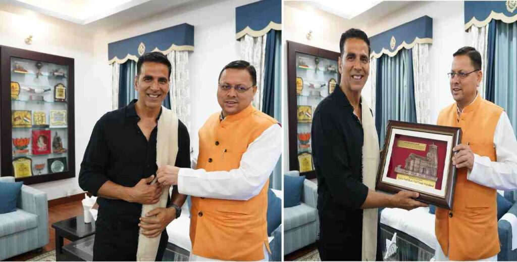 अभिनेता अक्षय कुमार ने मुख्यमंत्री को अवगत कराया की मंगलवार को उन्हें केदारनाथ धाम में बाबा केदार के दर्शन का सुअवसर प्राप्त हुआ। उन्होंने केदारनाथ धाम में किए जा रहे पुनर्निर्माण कार्यों की प्रशंसा की। उन्होंने केदारनाथ धाम में तीर्थ यात्रियों की सुविधाओं के प्रति भी राज्य सरकार द्वारा की गई व्यवस्थाओं के प्रयासों की सराहना की। इस दौरान उन्होंने मुख्यमंत्री धामी के साथ मुख्यमंत्री आवास परिसर का भ्रमण किया।