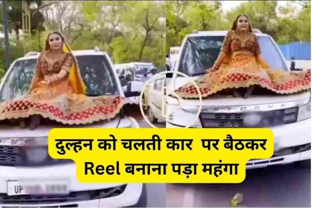 प्रयागराज के सिविल लाइन में कार की बोनट पर दुल्हन के लिबास पहन कर बना रही थी रील।
