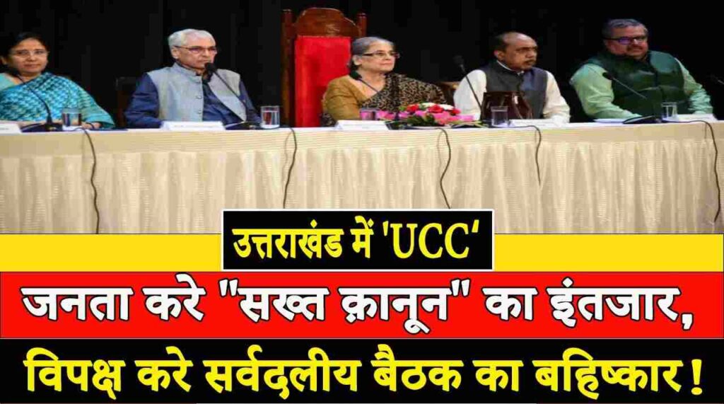 आप और कांग्रेस का साफ तौर पर यही कहना है की सिर्फ उत्तराखंड मे ही नहीं बल्कि पूरे प्रदेश मे ये कानून लागू होना चाहिए और उन्होने शिरकत इसलिए नहीं की क्योंकि उनकी पार्टी के द्वारा कमेटी से अध्यन्न के लिए कमेटी से मसौदा मांगा गया था जो की नहीं दिया गया विपक्ष का आरोप है की प्रदेश सरकार लोकसभा चुनाव मे वोट बटोरने के लिए UCC कानून को लेकर उत्सुक है। लेकिन जानकारों का ये भी कहना है की अगर विपक्ष को प्रदेश मे UCC से कोई दिक्कत है तो कमेटी के सामने जाकर अपनी बात रखनी चाहिए थी। आपको बता दें की यूसीसी समिति गठन के बाद से ही समिति पूरे प्रदेश में 30 से अधिक बैठकों में समाज अलग-अलग वर्गों से चर्चा कर चुकी है। UCC ड्राफ्ट को लेकर कमेटी का कहना है की जल्द से जल्द ड्राफ्ट तैयार कर लिया जाएगा। पूरे मामले पर बीजेपी का कहना है की पार्टी प्रदेश मे UCC लागू करने के पक्ष मे है इससे सभी धर्मों के अनुयाइयों को समान अधिकार मिलेगा…वहीं बीजेपी का कहना है की AAP और कांग्रेस ने UCC की बैठक मे न आकार ये साबित कर दिया है की दोनों ही पार्टियां तुष्टीकरण की राजनीति करती हैं।