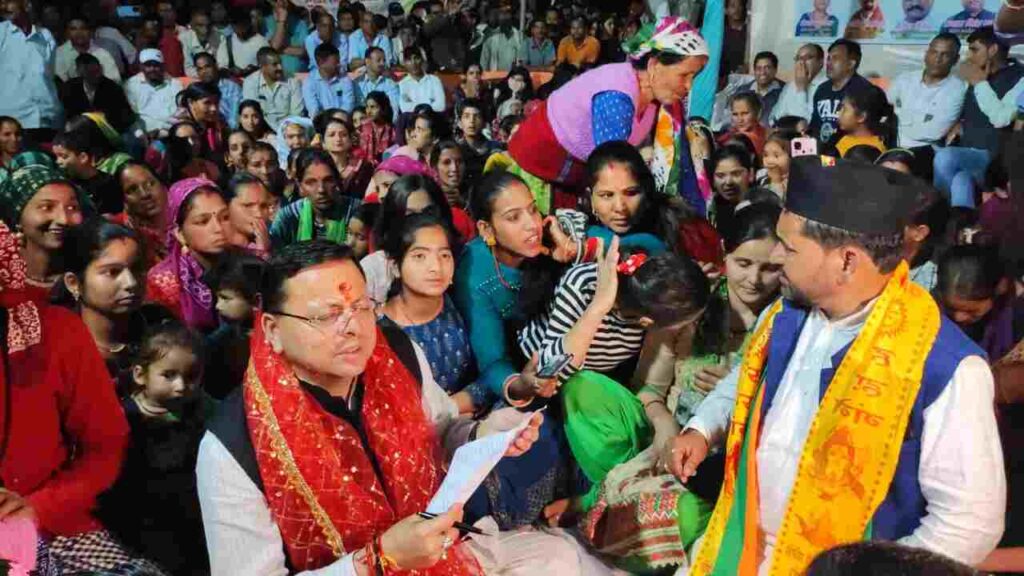 उत्तरकाशी: दो दिवसीय उत्तरकाशी दौरे पर पहुंचे मुख्यमंत्री पुष्कर सिंह धामी ने शनिवार को ग्राम नेताला में रात्रि चौपाल लगाकर जन समस्याएं सुनी एवं संबंधित अधिकारियों को समस्याओं के त्वरित निस्तारण हेतु निर्देशित किया। रात्रि चौपाल के लिए पहुंचे मुख्यमंत्री पुष्कर सिंह धामी ने लोगों के बीच जमीन में बैठ प्रत्येक व्यक्ति से उनकी समस्याएं जानी। उन्होंने कहा सरकार की योजनाओं एवं प्रशासन द्वारा किए जा रहे काम को आमजन के बीच बैठकर ही समझा जा सकता है।