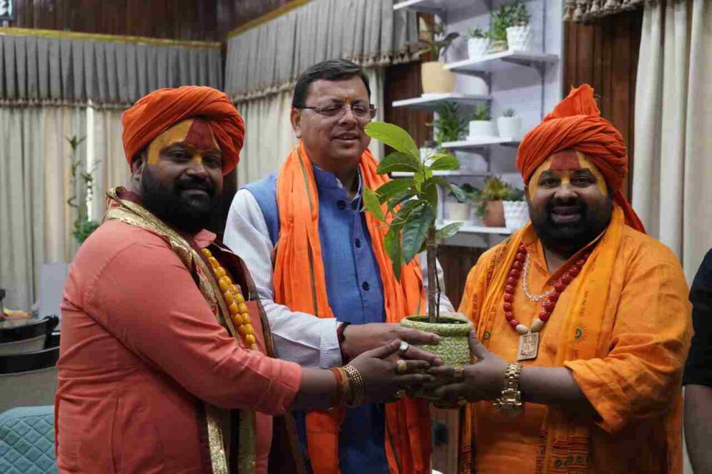 देहरादून: मुख्यमंत्री पुष्कर सिंह धामी से सोमवार को मुख्यमंत्री कैम्प कार्यालय में अयोध्या से आये दशरथ गद्दी के पीठाधीश्वर महन्त बृजमोहन दास जी महाराज ने भेंट की। मुख्यमंत्री ने पीठाधीश्वर महन्त बृजमोहन दास जी महाराज का स्वागत करते हुए उनका आशीर्वाद प्राप्त किया।
