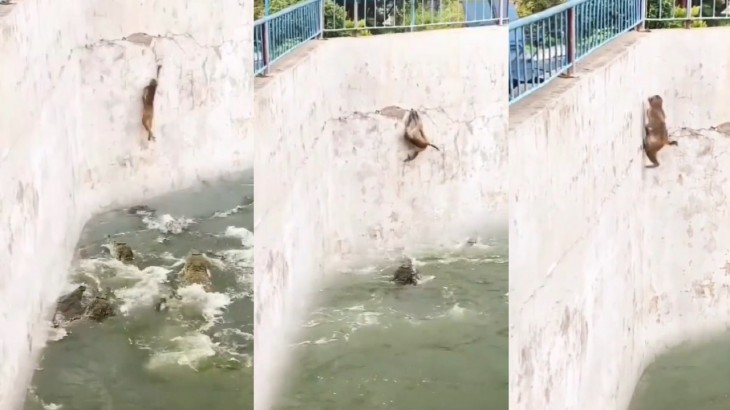 दर्जनों मगरमच्छों से भरे कुंड में गिरा बंदर