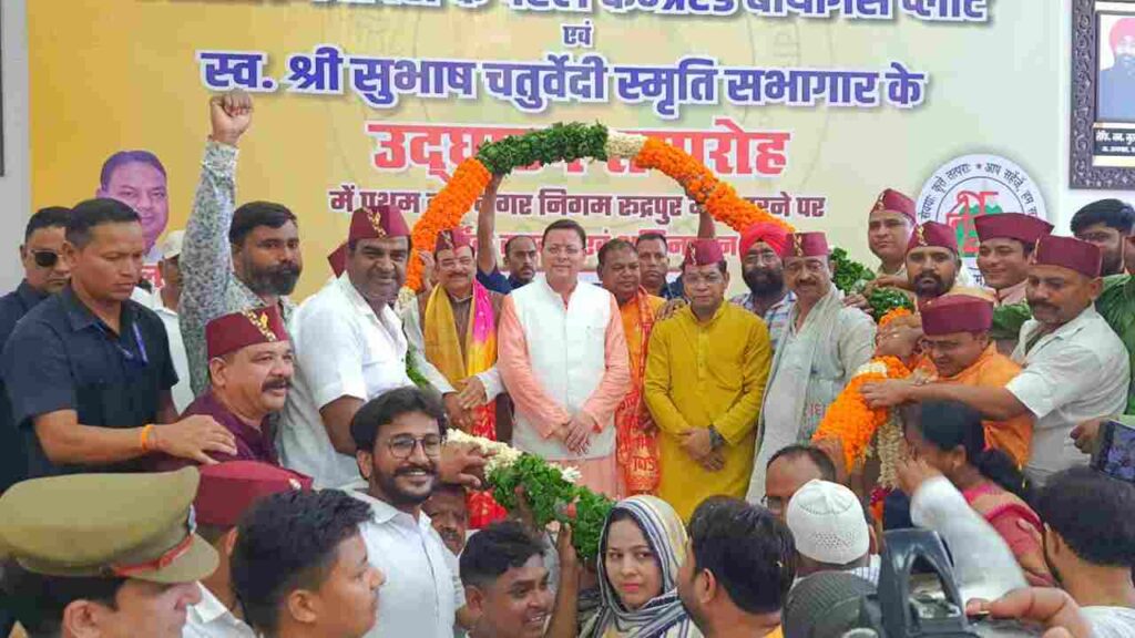 रुद्रपुरः मुख्यमंत्री पुष्कर सिंह धामी ने रविवार को नगर निगम रुद्रपुर, उधमसिंह नगर में आयोजित कार्यक्रम में प्रतिभाग करते हुए ₹ 2435.11 लाख रुपए की 4 योजनाओं का लोकार्पण किया। उन्होंने नगर निगम क्षेत्र रूद्रपुर के अंतर्गत सड़कों के सुधारीकरण हेतु ₹2 करोड़ की धनराशि देने की भी घोषणा की। मुख्यमंत्री पुष्कर सिंह धामी द्वारा लोकार्पण की गई योजनाओं में ₹ 355.28 लाख की ट्रॉजिट कैम्प में सिडकुल रोड से ट्रांजिट कैम्प थाने की ओर 660 मी० डिवाईडर सहित सी०सी० सडक का निर्माण कार्य। ₹ 363.93 लाख से नगर निगम वार्ड 1 जेसीस स्कूल से शिमला बहादुर मेन रोड व नयी बस्ती मेन रोड सिडकुल तक सडक निर्माण कार्य, ₹215.90 लाख की लागत से नगर निगम रूद्रपुर में स्व. सुभष चतुर्वेदी स्मृति सभागार कार्य एवं ₹1500.00 लाख से जैविक कूड़े से कम्प्रेस्ड बायो गैस प्लांट कार्य शालिम रहा। इस दौरान मुख्यमंत्री पुष्कर सिंह धामी ने नगर निगम स्थित महर्षि वाल्मीकि मंदिर में पूजा अर्चना की। उन्होंने पर्यावरण मित्रों द्वारा आयोजित हवन यज्ञ मे भी प्रतिभाग किया।