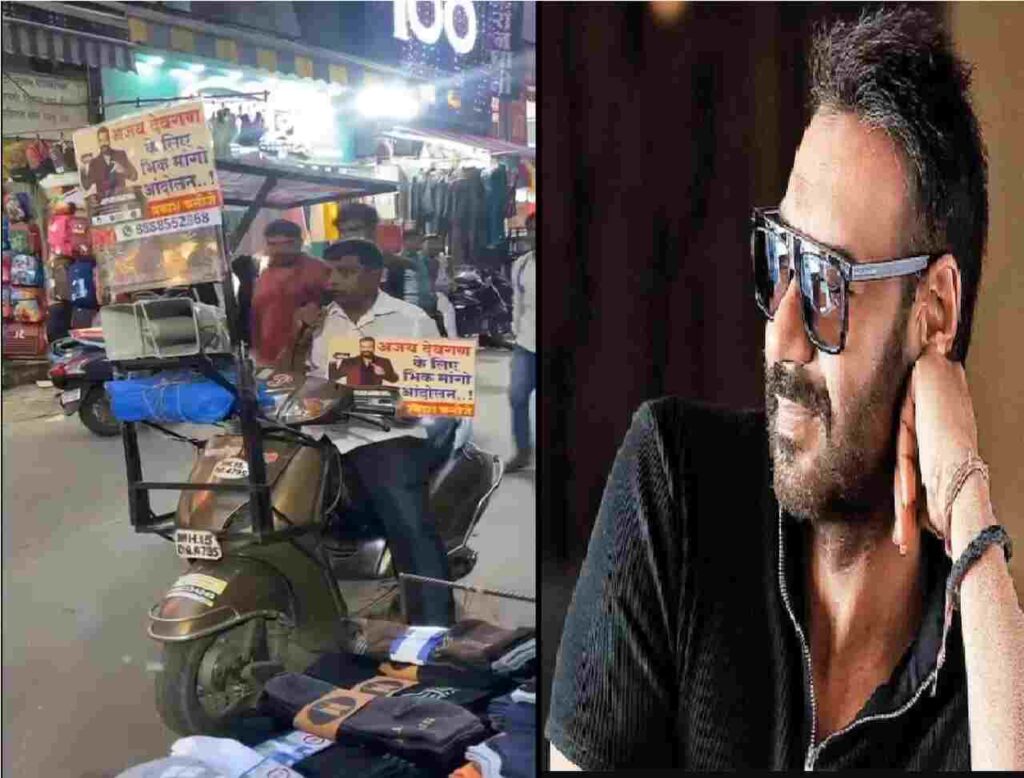नासिक: यूं तो अजय देवगन की गिनती इंडस्ट्री के दिग्गज स्टार्स में की जाती है। फैंस उनकी फिल्म ‘सिंघम अगेन’ का भी बेसब्री से इंतजार कर रहे हैं। हाल ही में रोहित शेट्टी ने बताया कि साल के अंत में फिल्म की शूटिंग शुरू हो जाएगी। इसी बीच नासिक के एक शख्स का वीडियो सामने आया है, जिसमें वह एक अभियान चला रहा है। एक अनजान शख्स ‘अजय देवगन के लिए भीख मांगो आंदोलन’ चला रहा है।