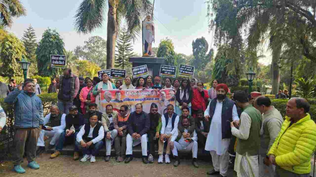 उत्तराखंड की बेटी अंकिता भंडारी को न्याय दिलाने के लिए कांग्रेस ने प्रदेशभर में अंकिता भंडारी न्याय यात्रा निकाली. ऋषिकेश में गणेश गोदियाल के नेतृत्व में कांग्रेस ने रेलवे रोड स्थित कांग्रेस भवन से त्रिवेणी घाट स्थित गांधी स्तंभ तक यात्रा निकाली. यात्रा के दौरान कांग्रेसियों ने धामी सरकार के खिलाफ नारेबाजी करते हुए प्रदर्शन किया और वीआईपी का नाम उजागर करने की मांग की.