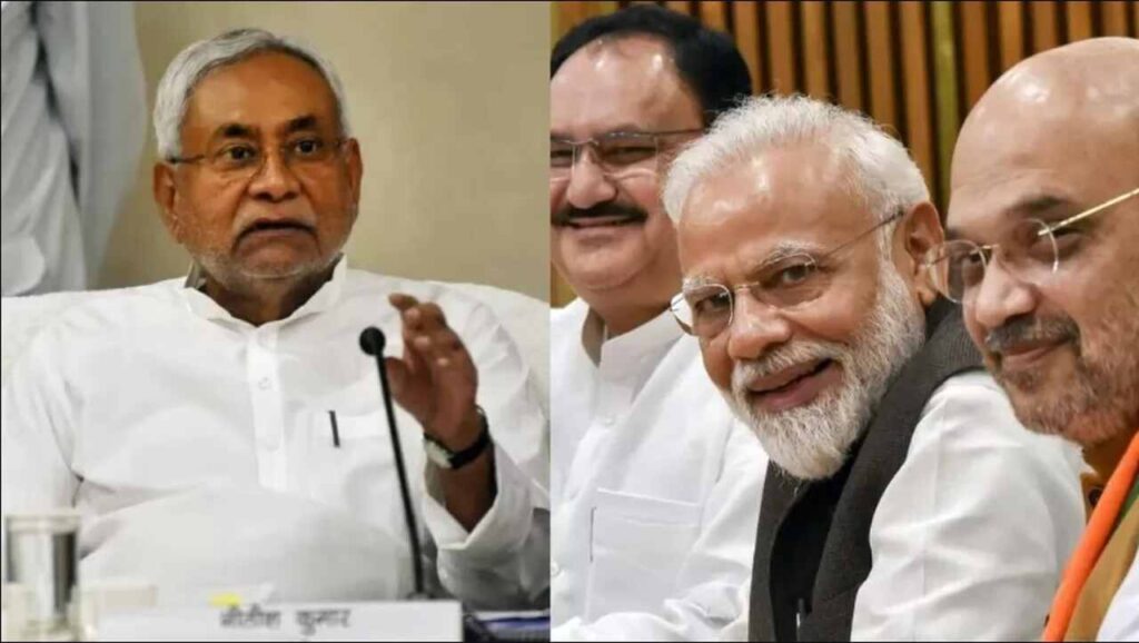 नई दिल्ली: बिहार में सियासी उलटफेर की आशंका लगातार बढ़ती जा रही है। माना जा रहा है कि नीतीश कुमार जल्द ही कोई बड़ी घोषणा कर सकते हैं। बीती रात भाजपा के केंद्रीय नेतृत्व ने बिहार के नेताओं के साथ दिल्ली में बैठक की है। सूत्रों की मानें तो बिहार बीजेपी नेताओं की गृहमंत्री अमित शाह और जेपी नड्डा के साथ बैठक में जेडीयू को लेकर चर्चा हुई है। इस बैठक के बाद अंदाजा लगाया जा रहा है कि जल्द ही एनडीए में नीतीश कुमार की वापसी को लेकर उाइनल फैसला लिया जा सकता है।