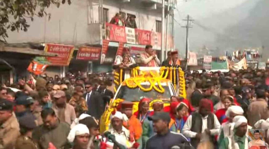 रुद्रप्रयाग : मुख्यमंत्री पुष्कर सिंह धामी रविवार को एक दिवसीय जनपद भ्रमण पर रुद्रप्रयाग पहुंचे हैं। इस दौरान उनके द्वारा प्राचीन देवल से अगस्त्यमुनि के खेल मैदान तक रोड शो कार्यक्रम किया गया। सीएम धामी के स्वागत के लिए यहां हजारों की संख्या में स्थानीय लोग मौजूद रहे। डोल दमाऊं के साथ सीएम धामी का स्वागत किया गया। रोड शो के बाद सीएम नारी शक्ति वंदन महोत्सव के अंतर्गत आयोजित ब्वै, ब्वारी, नौनी कौथिग में प्रतिभाग करने पहुंचे।