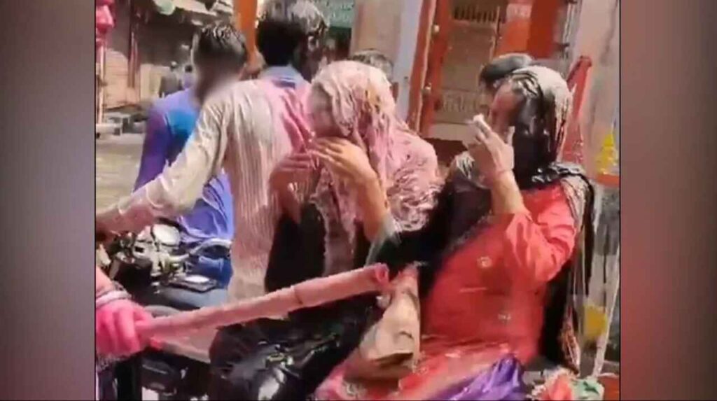 बिजनौर : बिजनौर के धामपुर में होली पर हुड़दंग करने और मुस्लिम परिवार पर जबरन रंग डालने का वीडियो सामने आया है. वीडियो वायरल होने के बाद पुलिस ने मामले को संज्ञान में लिया और तीन बाल अपचारी सहित चार युवकों को पकड़ लिया है. पुलिस ने जबरन रंग डालने और अभद्रता करने का केस दर्ज कर लिया है.