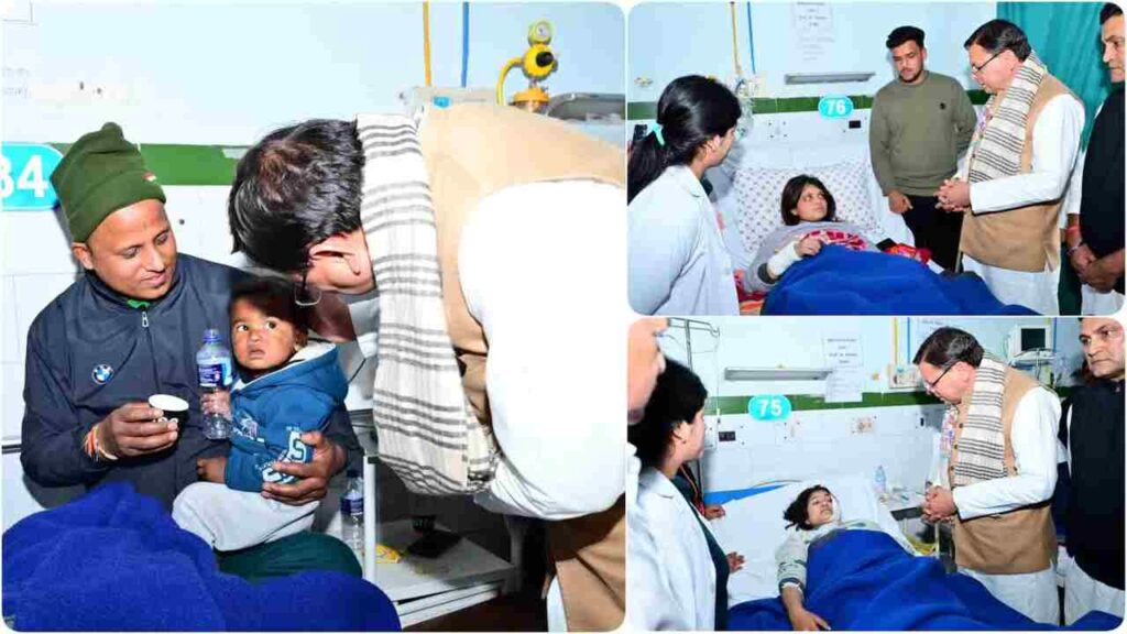 हल्द्वानी: नैनीताल बस हादसे के घायलों का हालचाल जानने के लिए मुख्यमंत्री पुष्कर सिंह धामी गुरुवार 26 दिसंबर को हल्द्वानी पहुंचे. हल्द्वानी में मुख्यमंत्री पुष्कर सिंह धामी ने सुशीला तिवारी हॉस्पिटल में भर्ती बस हादसे के घायलों का हाल जाना. इस दौरान मुख्यमंत्री पुष्कर सिंह धामी ने घायलों से बात भी की.