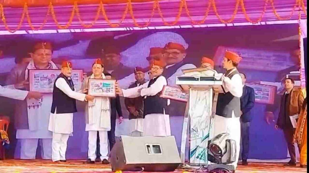 मुख्यमंत्री पुष्कर सिंह धामी चंपावत दौरे से वापस खटीमा पहुंचकर तराई बीज विकास निगम के परिसर में चल रहे सात दिवसीय उत्तरायणी कौतिक मेले में पहुंचे. जहां कुमाऊं सांस्कृतिक उत्थान मंच के कार्यकर्ताओं ने उनको उत्तराखंड की संस्कृति से जुड़े हुए प्रतीक चिन्हों को भेंट कर और शाल ओढ़ाकर सम्मानित किया. इस अवसर पर मुख्यमंत्री धामी ने अपने संबोधन में उत्तरायणी कौतिक मेले की शुभकामनाएं तथा घुघुतिया, मकर संक्रांति व लोहड़ी पर्व की अग्रिम बधाई एवं शुभकामनाएं समस्त क्षेत्र वासियों व प्रदेशवासियों को दी.
