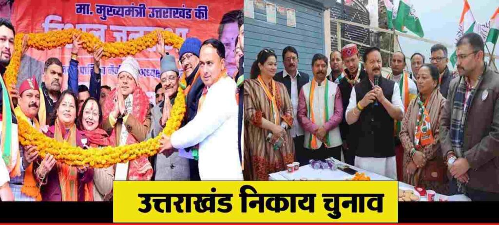 उत्तराखंड नगर निकाय चुनाव के लिए 23 जनवरी को वोटिंग होनी है. जिसके आज चुनाव प्रचार थमने से पहले आखिरी दिन में प्रत्याशी और स्टार-प्रचारको ने जमकर पसीना बहाया इसी क्रम में सीएम धामी ने बीजेपी की तरफ से रुड़की लक्सर बड़कोट सहित कई जगह चुनावी प्रचार किया। अलग निकाय क्षेत्रों में बीजेपी के अन्य सांसदों, कैबिनेट मंत्रियों विधयकों और बीजेपी नेताओं ने भी बीजेपी को वोट देने की अपील की । आपको बता दें कि सीएम सहित भाजपा के तमाम नेता और पार्टी पदाधिकारि पार्टी की प्रचंड जीत का दावा कर रहे हैं। आपको बता दें कि प्रदेश भर में नगर प्रमुख यानी मेयर पदों के लिए कुल 72 उम्मीदवार, नगर पालिका परिषद और नगर पंचायत अध्यक्ष पदों के लिए 445 उम्मीदवार, सभासद और सदस्य पदों के लिए 4888 उम्मीदवार चुनावी मैदान में हैं. ऐसे में प्रदेश भर में कुल 5405 उम्मीदवार चुनाव लड़ रहे हैं. 23 जनवरी को मतदान होना है अब देखना ये होगा कि जनता किसके प्रचार को एहमियत देती है और किसको वोट देती है