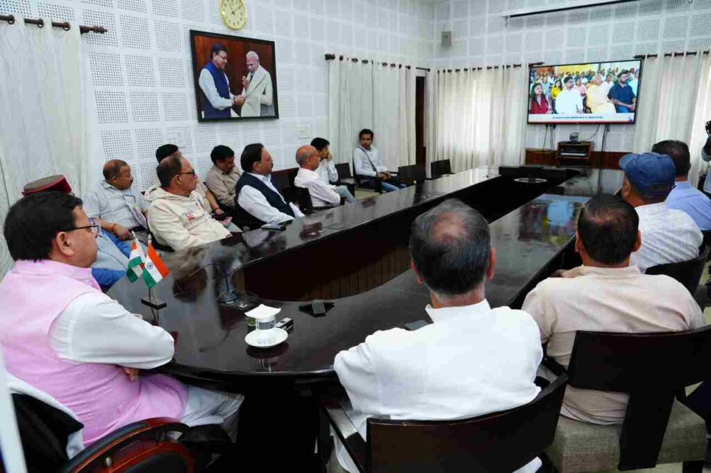 देहरादून: मुख्यमंत्री पुष्कर सिंह धामी ने रविवार को मुख्यमंत्री कैंप कार्यालय में प्रधानमंत्री नरेंद्र मोदी द्वारा प्रस्तुत ‘मन की बात’ कार्यक्रम के 121वें संस्करण को सामूहिक रूप से सुना। इस अवसर पर विधायक खजान दास, दायित्वधारी अनिल डब्बू, पुनीत मित्तल सहित अनेक गणमान्य व्यक्ति उपस्थित रहे।