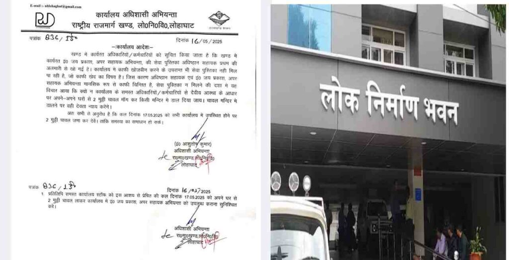 सोशल मीडिया पर वायरल पत्र में लिखा गया था कि सभी कर्मचारी को अपने घर से दो-दो मुट्ठी चावल लाने हैं. जिन्हें मंदिर में डाल दिया जाएगा. अधिशासी अभियंता आशुतोष कुमार के नाम से जारी हुआ यह पत्र देखकर हर कोई हैरान था. शासन ने भी इस मामले को काफी गंभीरता से लिया. शायद यही कारण है कि फौरन देहरादून लोक निर्माण विभाग मुख्यालय से अधिशासी अभियंता आशुतोष कुमार से स्पष्टीकरण मांगा. उन्हें तीन दिन के भीतर इस मामले पर स्पष्टीकरण देने के भी निर्देश दिए गए. साथ ही स्पष्टीकरण न दिए जाने की स्थिति में कार्रवाई की भी चेतावनी दी गई.