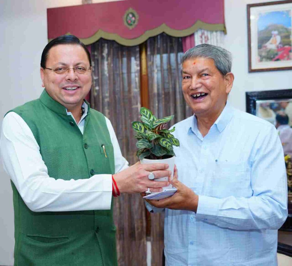 देहरादून: उत्तराखंड के मुख्यमंत्री पुष्कर सिंह धामी से पूर्व मुख्यमंत्री हरीश रावत ने मुख्यमंत्री आवास में शिष्टाचार भेंट की। यह मुलाकात सौहार्दपूर्ण वातावरण में हुई, जिसमें दोनों नेताओं ने राज्य की विभिन्न मुद्दों पर चर्चा की और राज्य के विकास के लिए उनके विचारों का आदान-प्रदान किया।